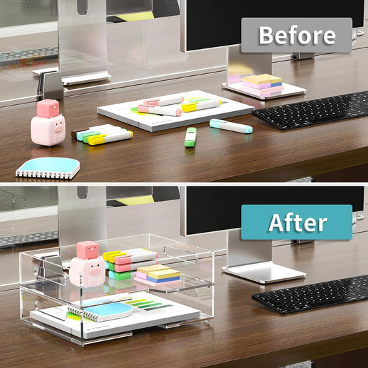 Acrylic Paper Tray 2 Pack Clear Letter Tray Desk Stackable Organizer Tray for School, Home, Office Desk Accessories - Horizontal