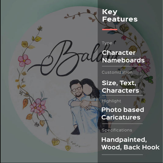 Personalized Photo Based Character Sketch Nameboard - Circle