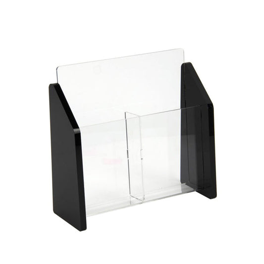 2 Pocket Tri Fold Pamphlet Holder Clear Acrylic with Black Sides