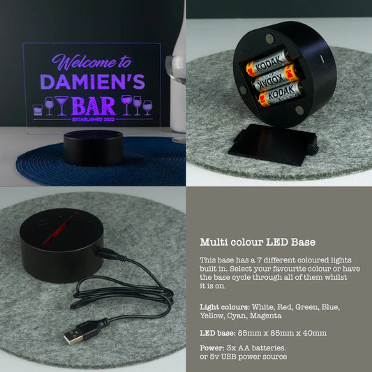 Personalised home bar pub sign. Custom engraved light up LED lamp. Home cocktail drinks trolley signage Beer Gin Signs L40RAC