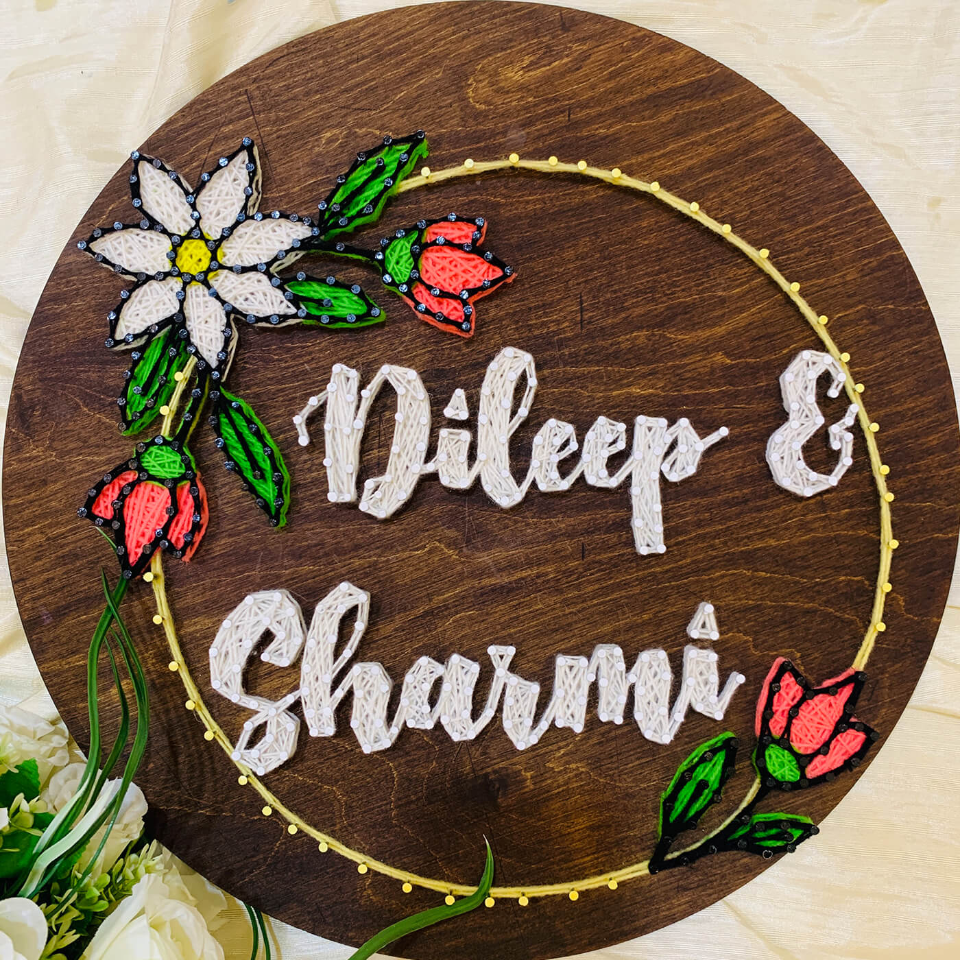 Floral String Art Nameplate - Couple Names