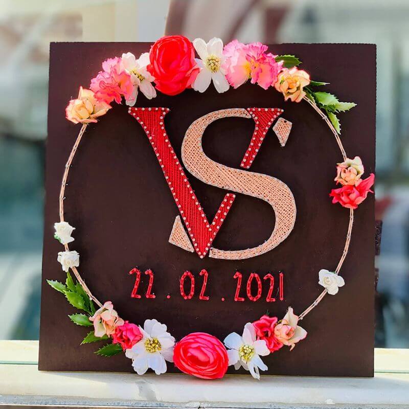 - Bored of cliche wedding pictures as gifts for anniversaries? Get the finest string art that flaunts your wedding date and initials/logo.