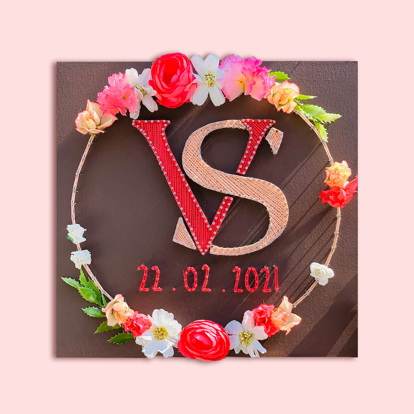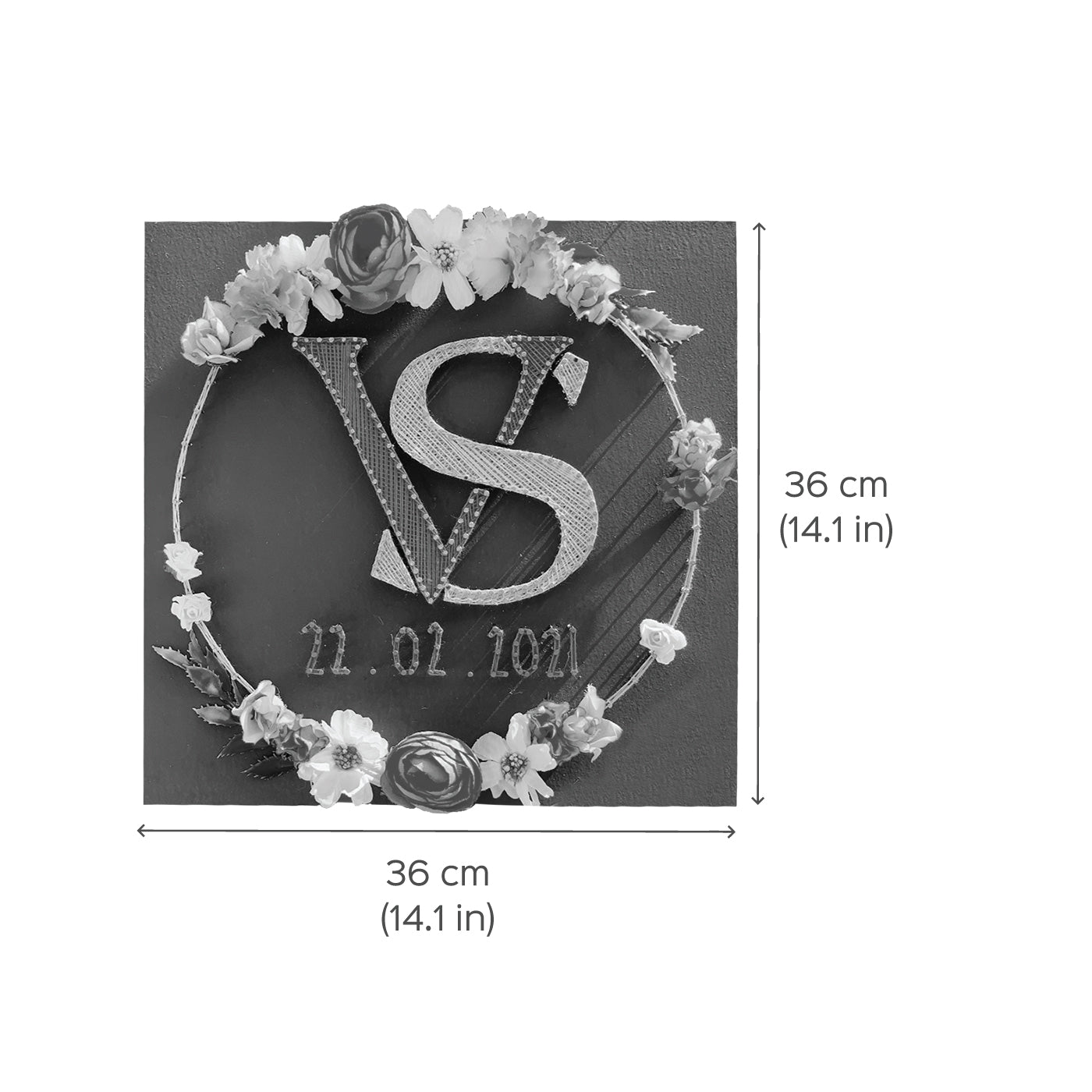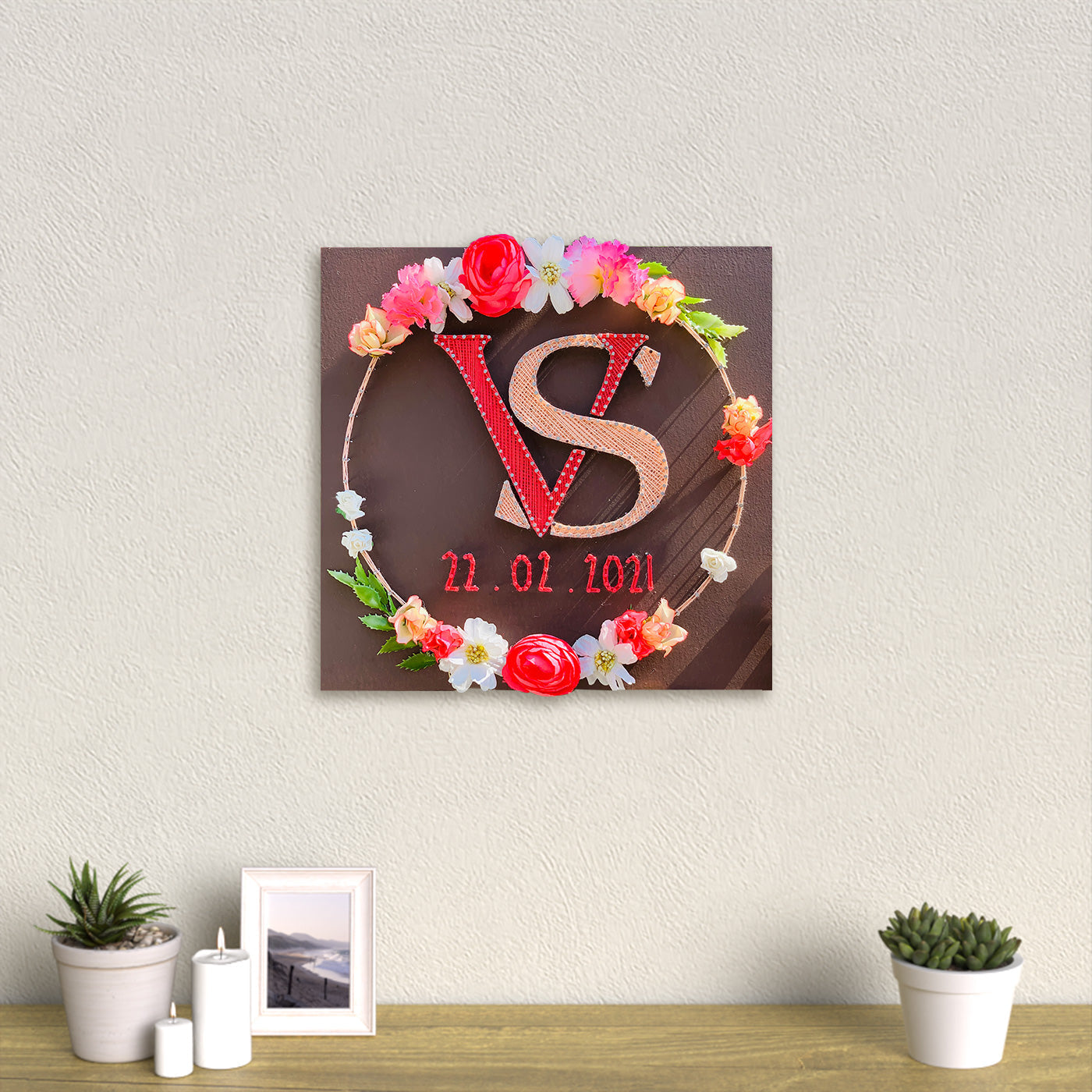 String Art Floral Wreath Personalized Wedding Couple Initials Nameplate